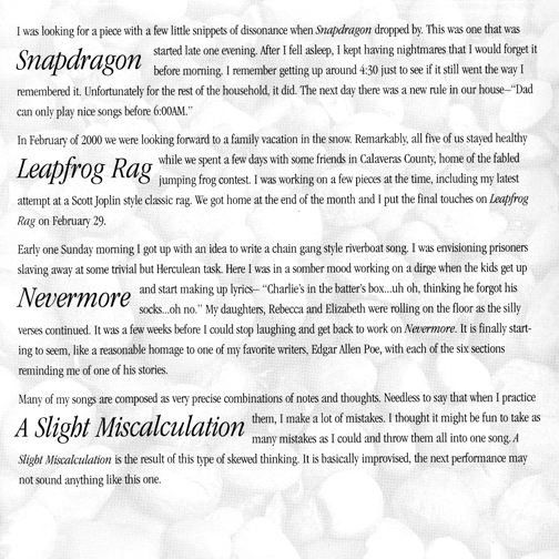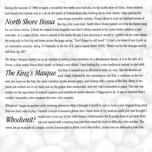 The writing and recording fire re-ignited with On The Horizon, and I kept the pace up over the next year with more pieces, more concerts, and consequently, another album in 2001.